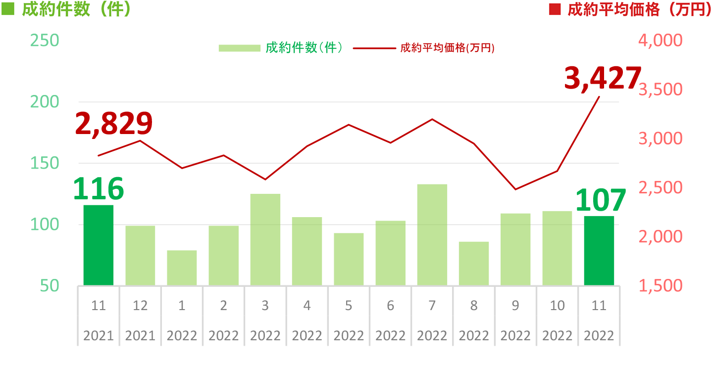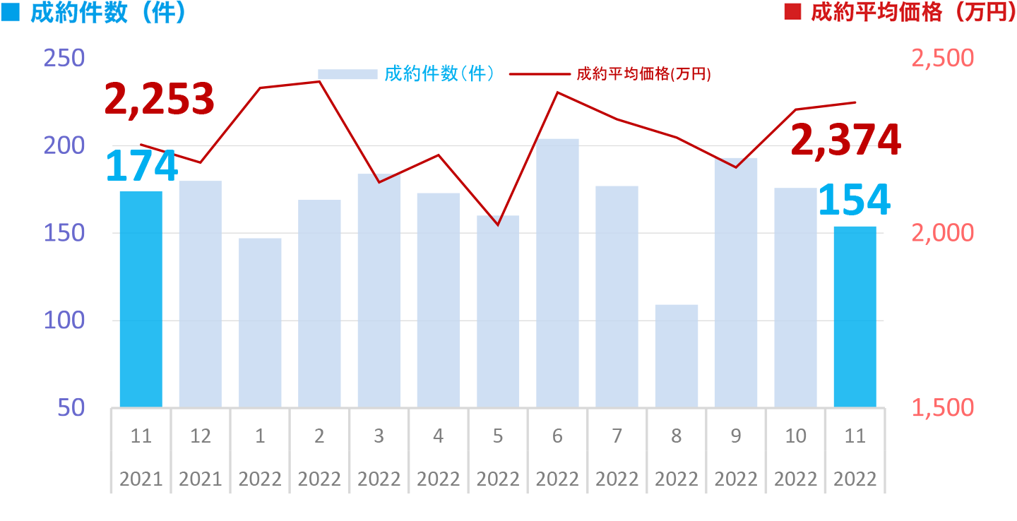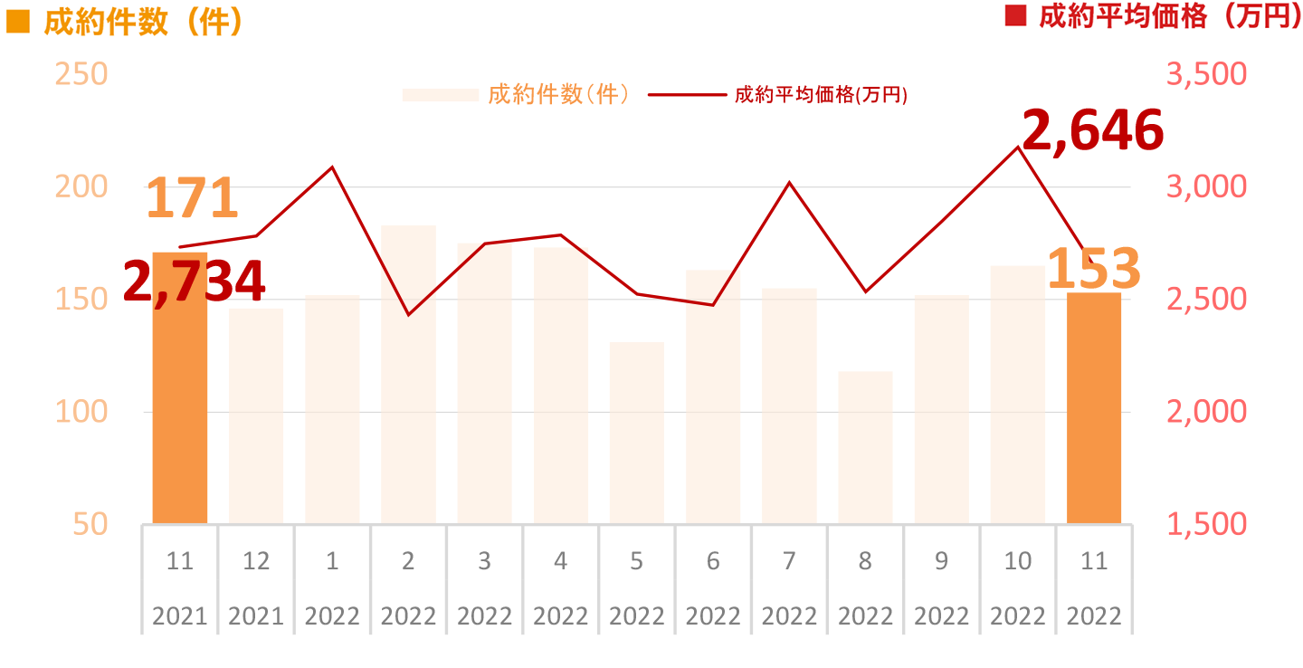 ※本ページ及びグラフは、財団法人東日本不動産流通機構『2022年11月度Market Watch』(全国版)に基づき、東急リバブル㈱が作成いたしました。