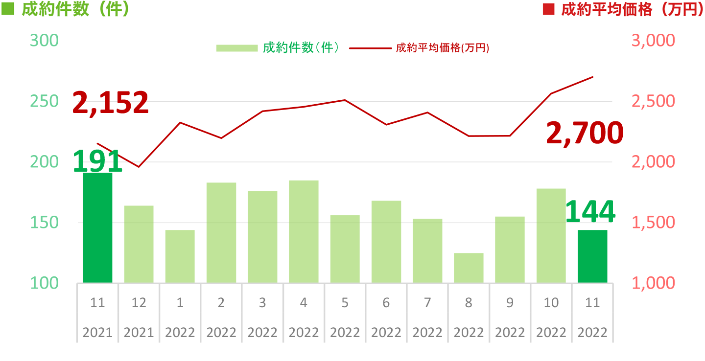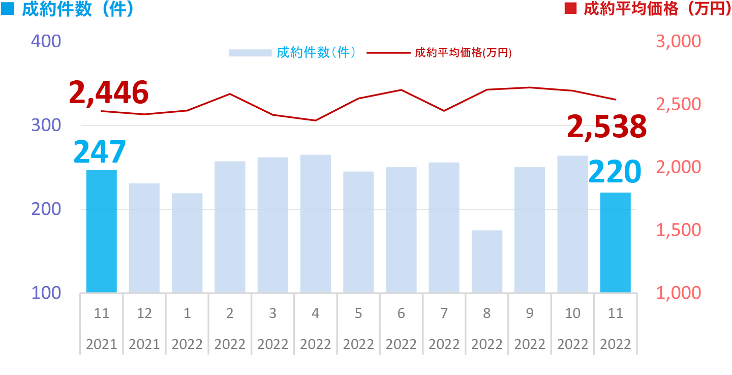 ※本ページ及びグラフは、財団法人東日本不動産流通機構『2022年11月度Market Watch』(全国版)に基づき、東急リバブル㈱が作成いたしました。