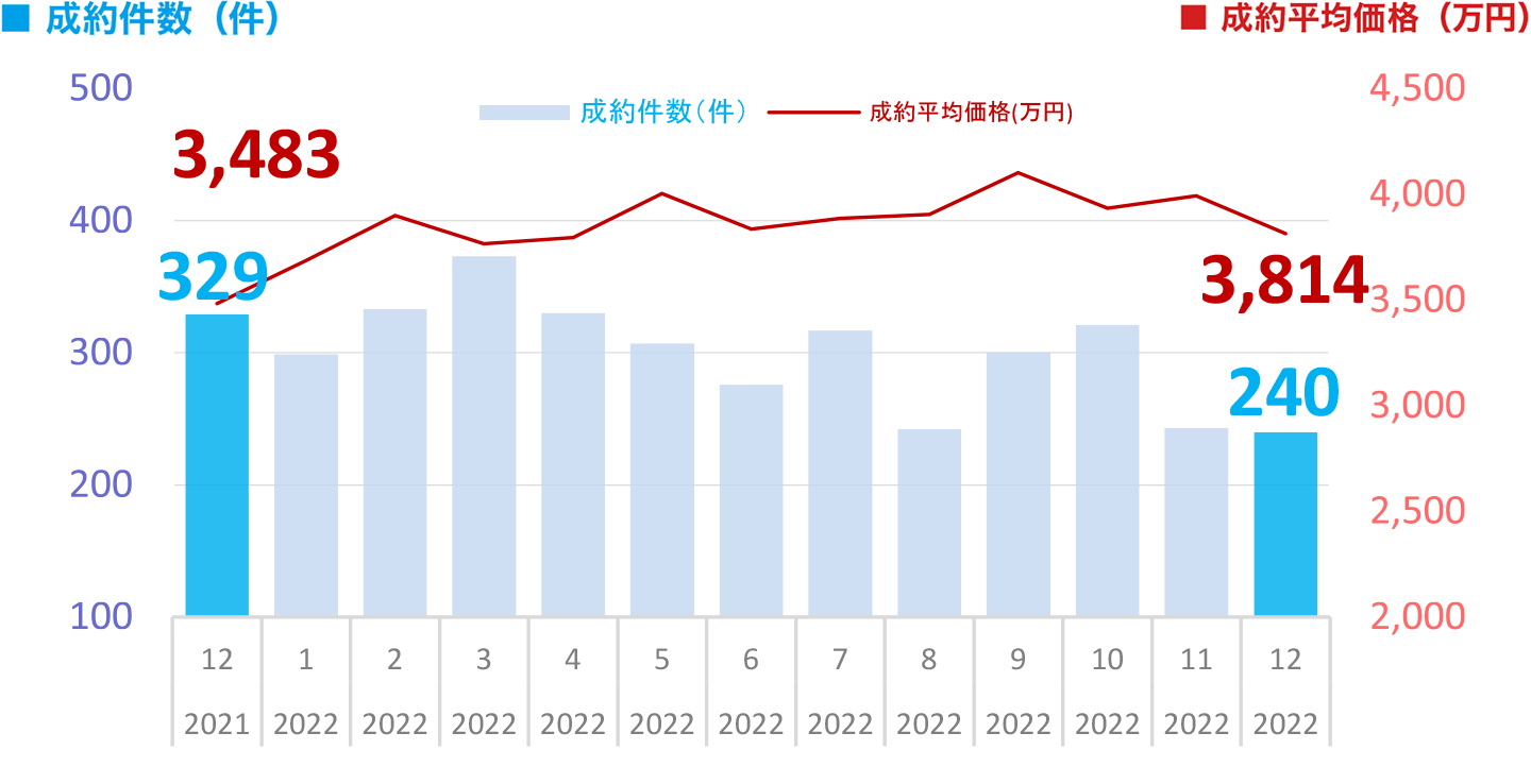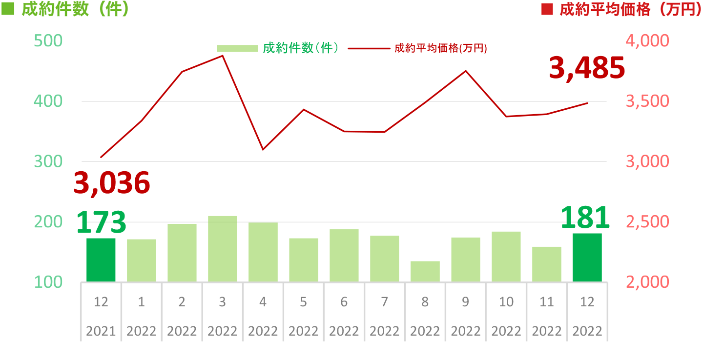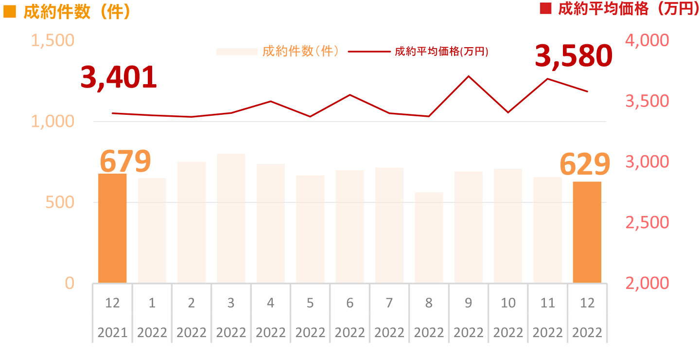 ※本ページ及びグラフは、財団法人東日本不動産流通機構『2022年12月度Market Watch』(全国版)に基づき、東急リバブル㈱が作成いたしました。