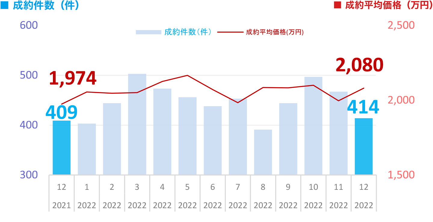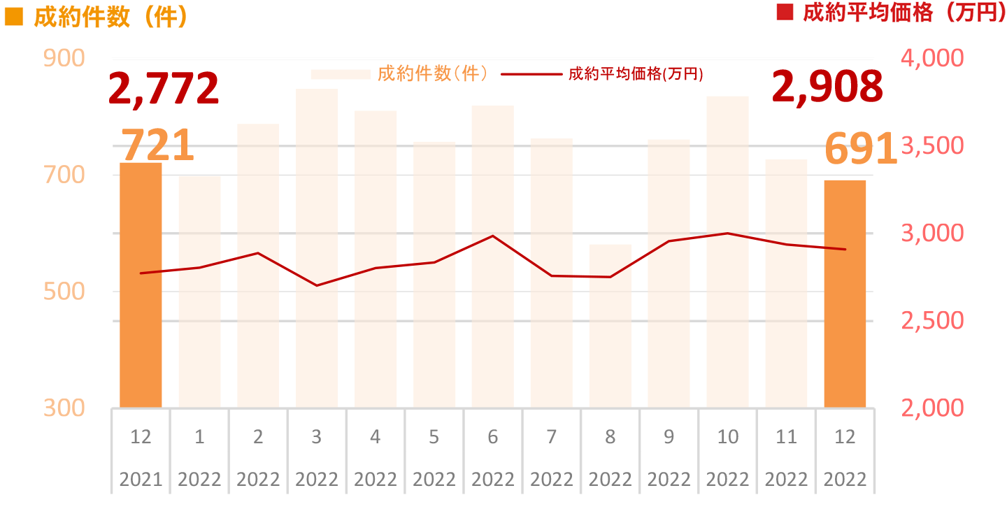 ※本ページ及びグラフは、財団法人東日本不動産流通機構『2022年12月度Market Watch』(全国版)に基づき、東急リバブル㈱が作成いたしました。