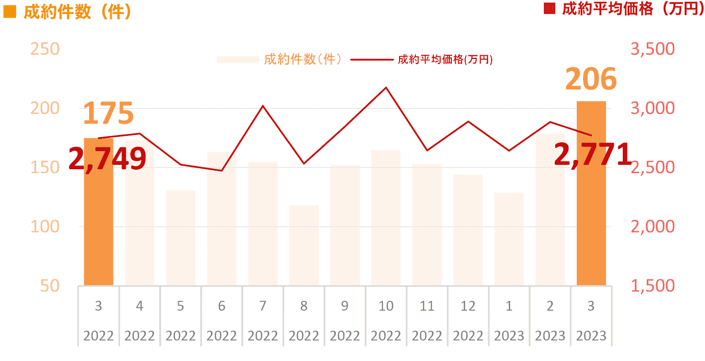 ※本ページ及びグラフは、財団法人東日本不動産流通機構『2023年3月度Market Watch』(全国版)に基づき、東急リバブル㈱が作成いたしました。