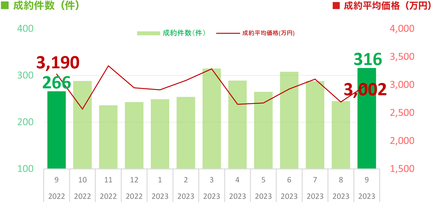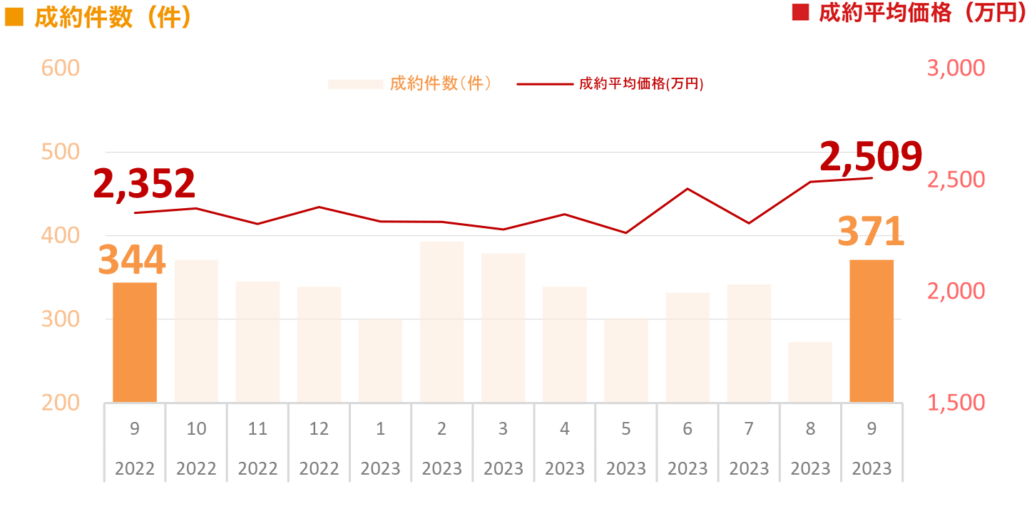 ※本ページ及びグラフは、財団法人東日本不動産流通機構『2023年9月度Market Watch』(全国版)に基づき、東急リバブル㈱が作成いたしました。