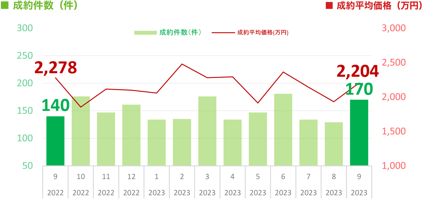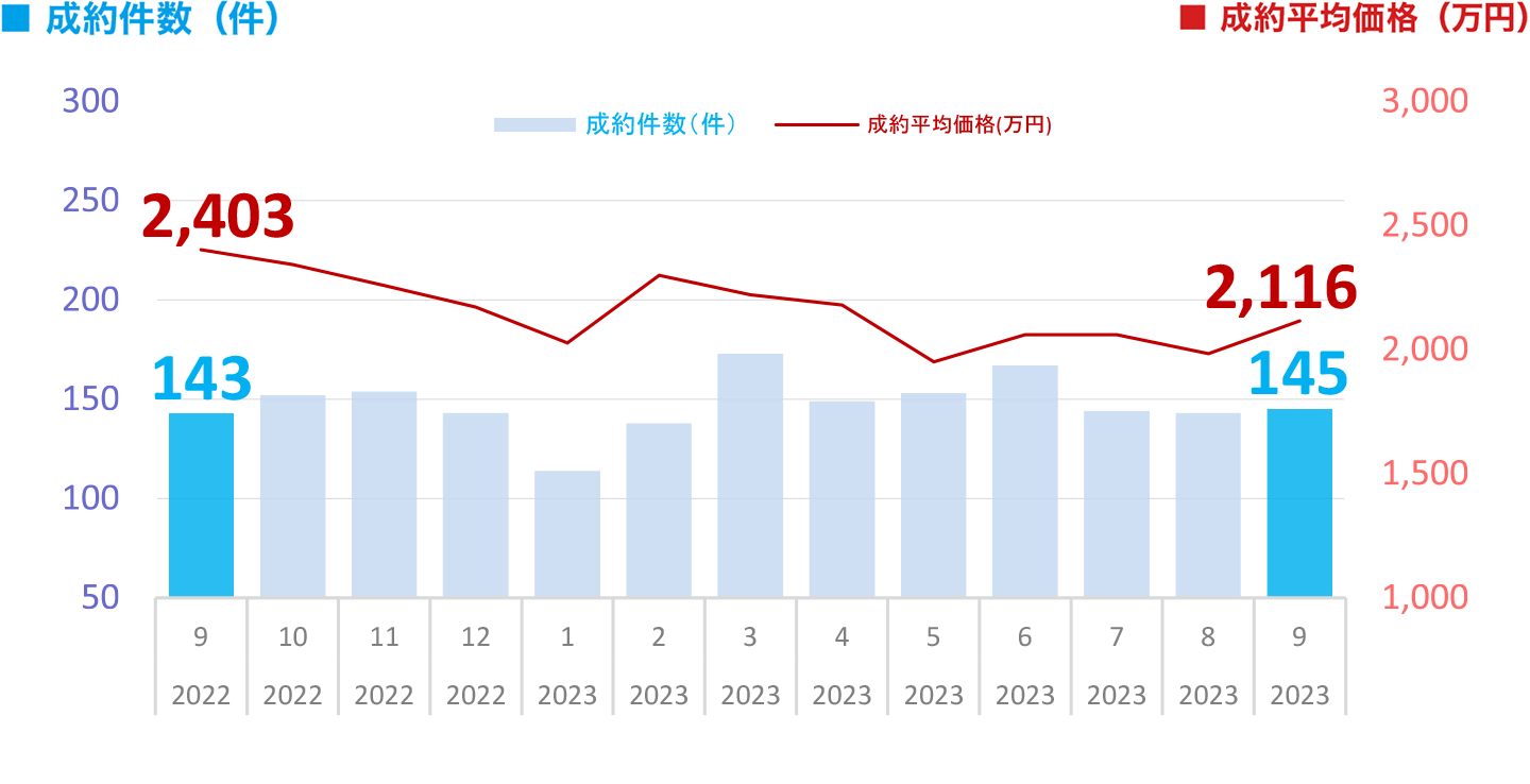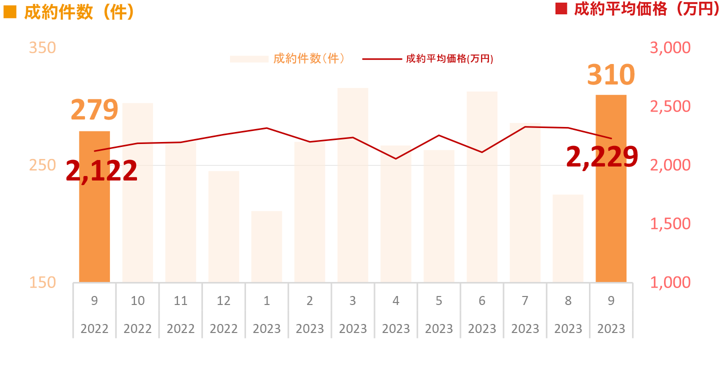※本ページ及びグラフは、財団法人東日本不動産流通機構『2023年9月度Market Watch』(全国版)に基づき、東急リバブル㈱が作成いたしました。