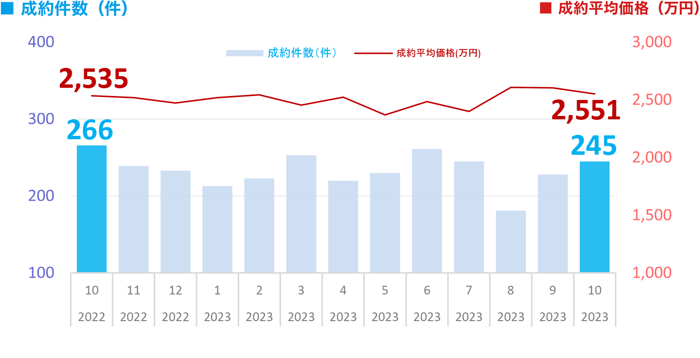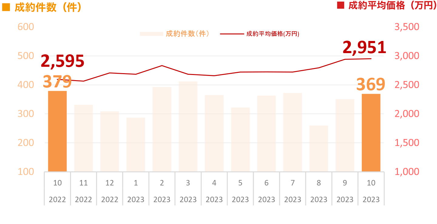 ※本ページ及びグラフは、財団法人東日本不動産流通機構『2023年10月度Market Watch』(全国版)に基づき、東急リバブル㈱が作成いたしました。
