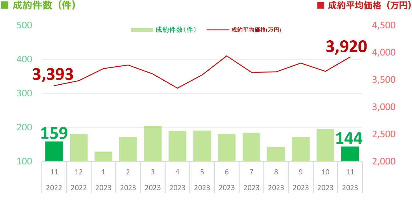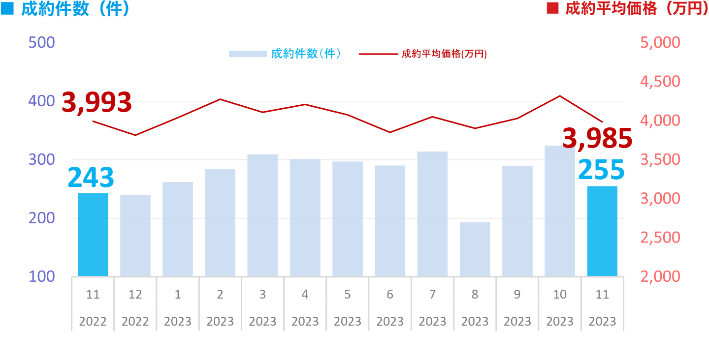 ※本ページ及びグラフは、財団法人東日本不動産流通機構『2023年11月度Market Watch』(全国版)に基づき、東急リバブル㈱が作成いたしました。
