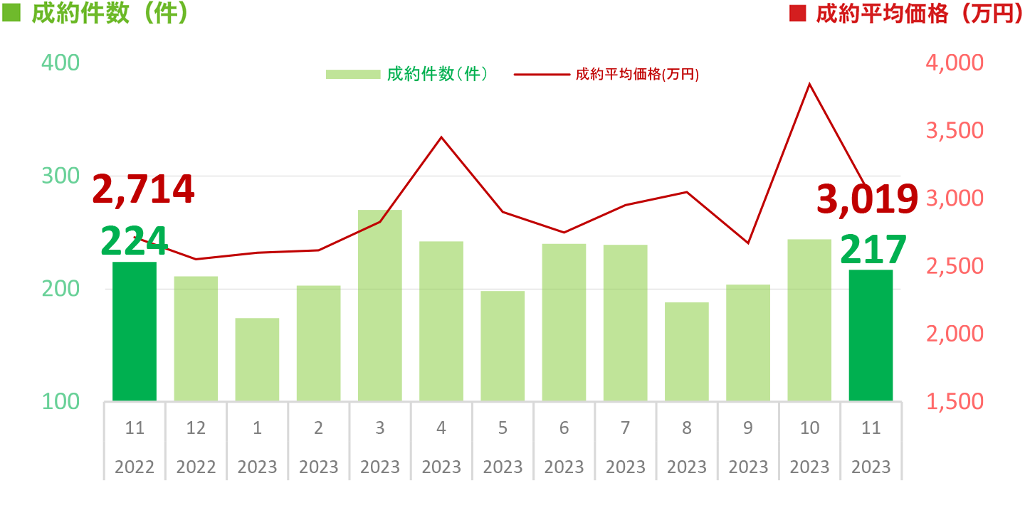 ※本ページ及びグラフは、財団法人東日本不動産流通機構『2023年11月度Market Watch』(全国版)に基づき、東急リバブル㈱が作成いたしました。