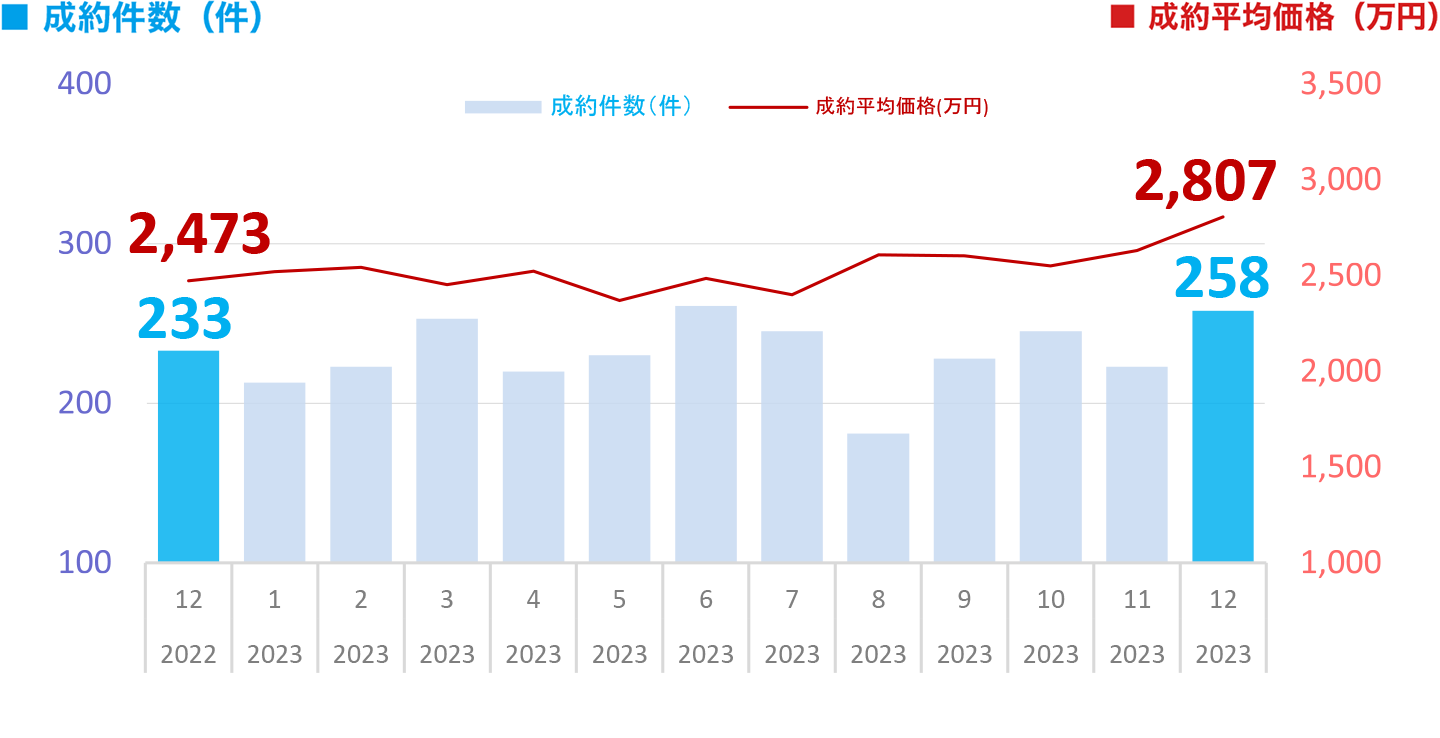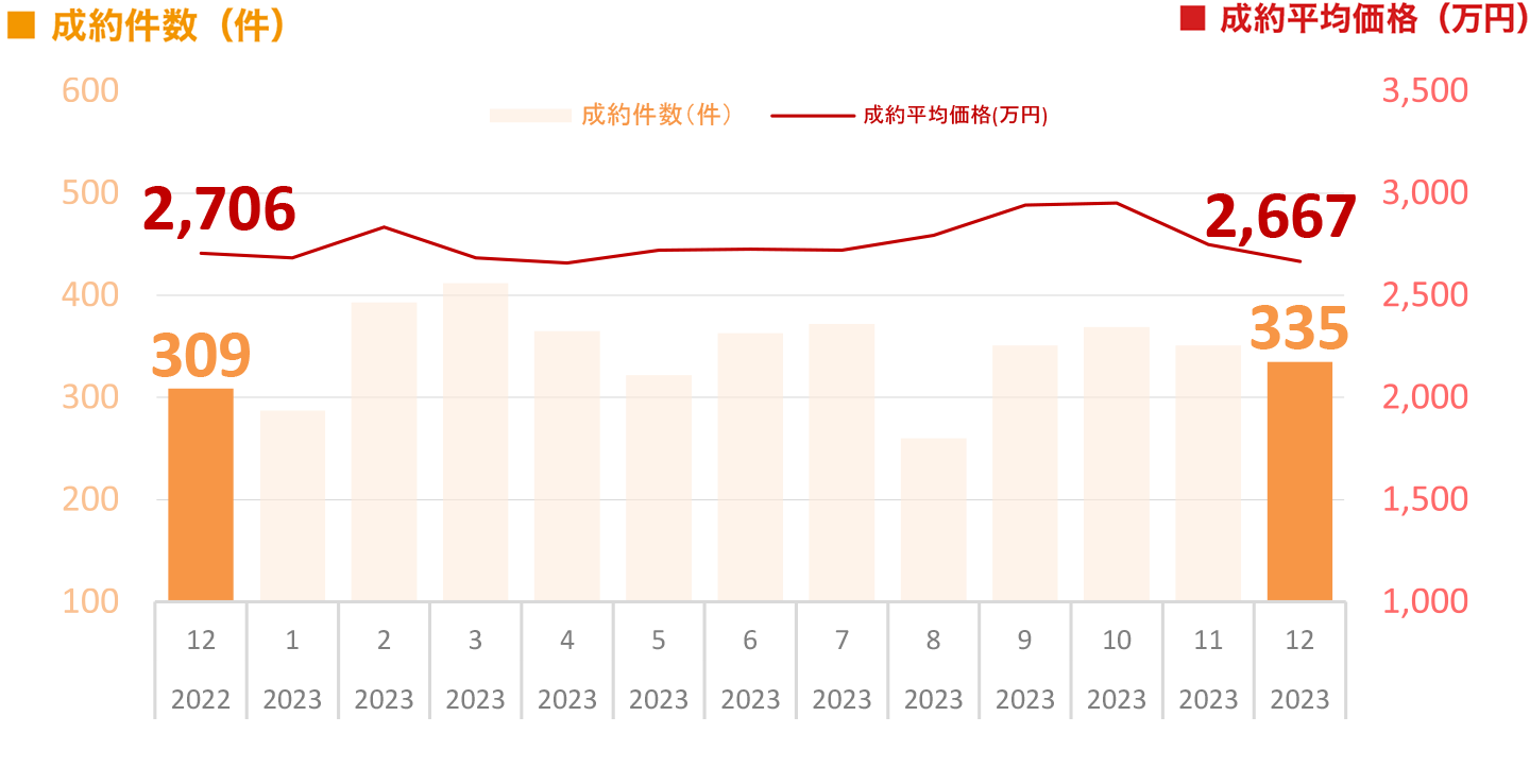 ※本ページ及びグラフは、財団法人東日本不動産流通機構『2023年12月度Market Watch』(全国版)に基づき、東急リバブル㈱が作成いたしました。
