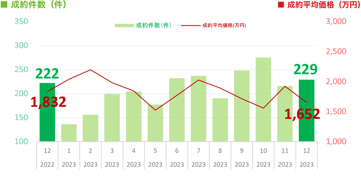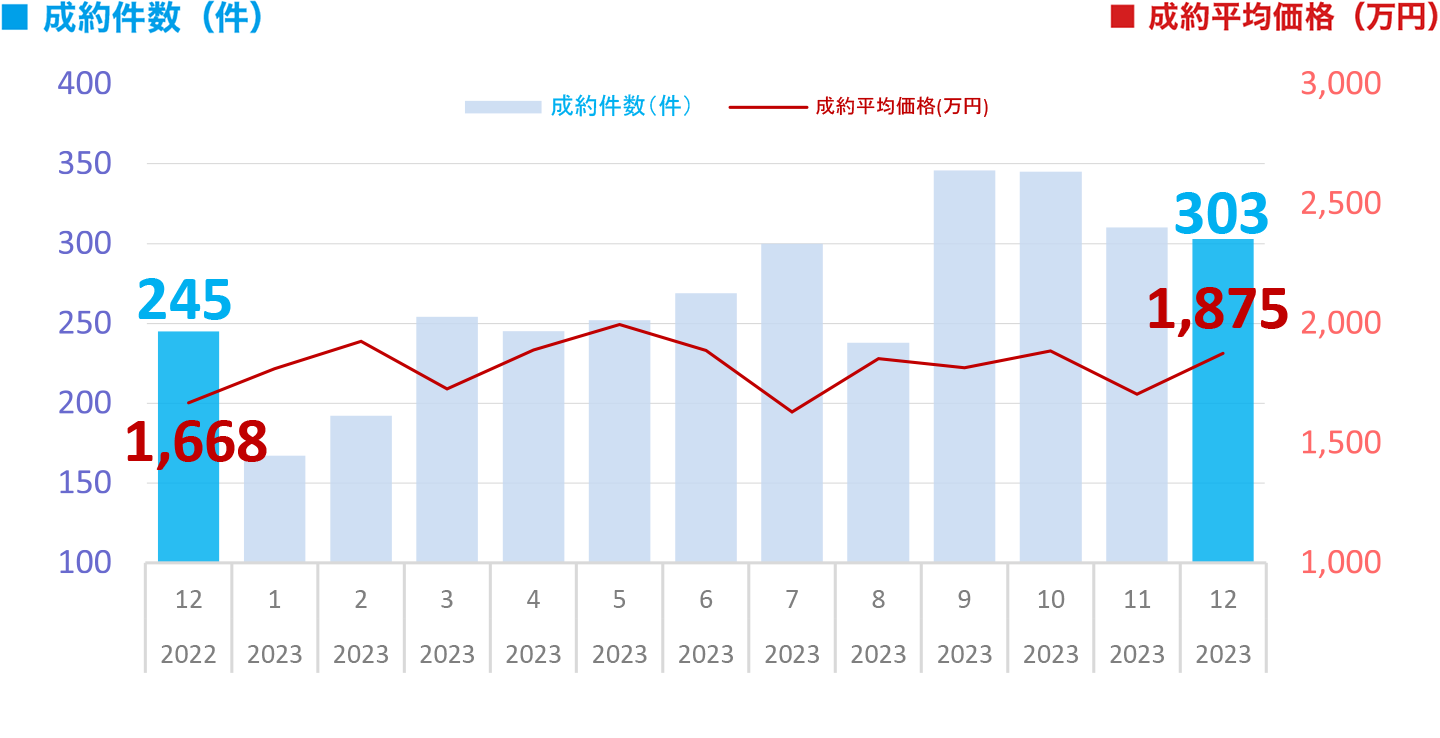 ※本ページ及びグラフは、財団法人東日本不動産流通機構『2023年12月度Market Watch』(全国版)に基づき、東急リバブル㈱が作成いたしました。