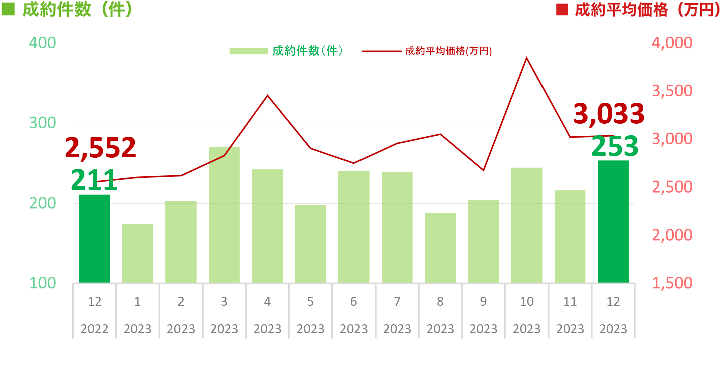 ※本ページ及びグラフは、財団法人東日本不動産流通機構『2023年12月度Market Watch』(全国版)に基づき、東急リバブル㈱が作成いたしました。