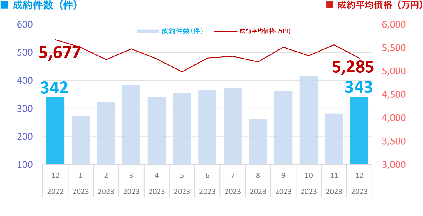 ※本ページ及びグラフは、財団法人東日本不動産流通機構『2023年12月度Market Watch』(全国版)に基づき、東急リバブル㈱が作成いたしました。