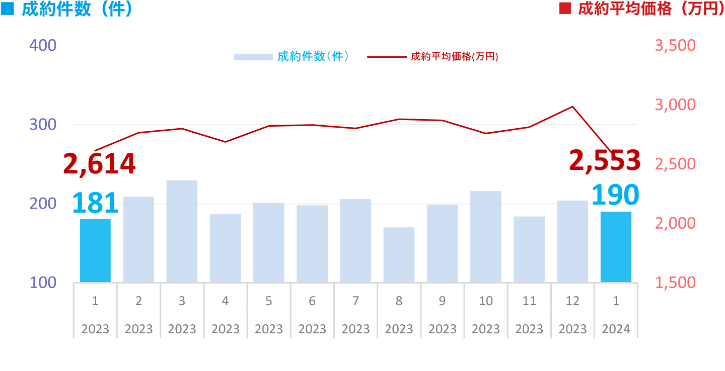 ※本ページ及びグラフは、財団法人東日本不動産流通機構『2024年1月度Market Watch』(全国版)に基づき、東急リバブル㈱が作成いたしました。