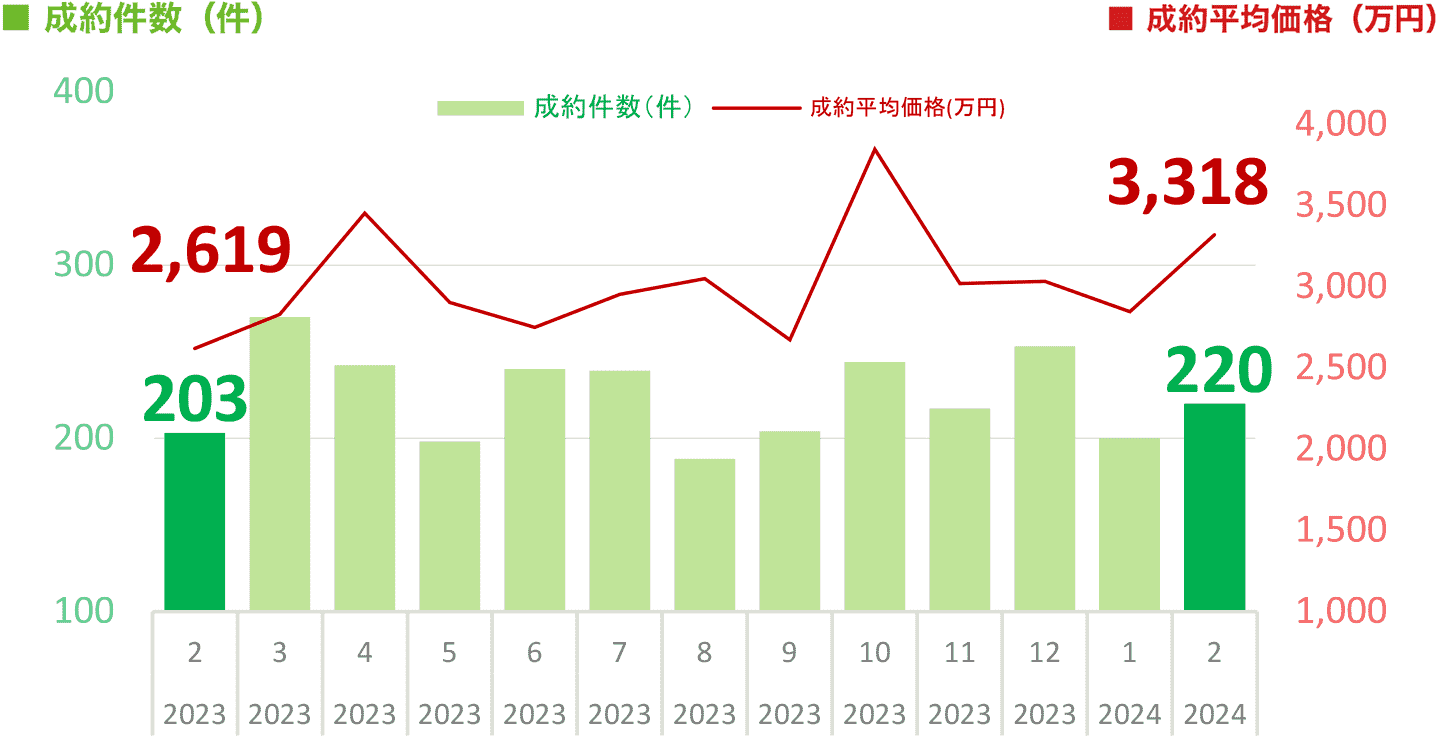 ※本ページ及びグラフは、財団法人東日本不動産流通機構『2024年2月度Market Watch』(全国版)に基づき、東急リバブル㈱が作成いたしました。