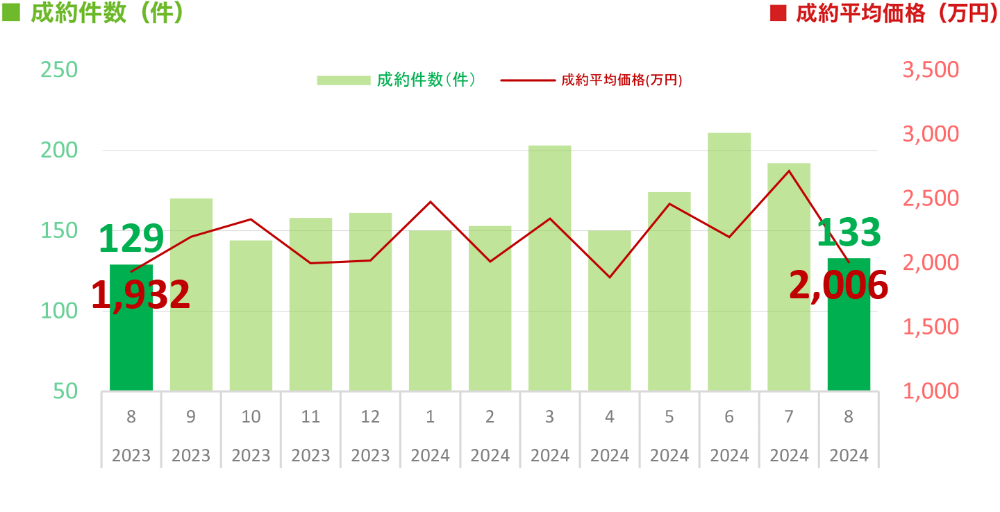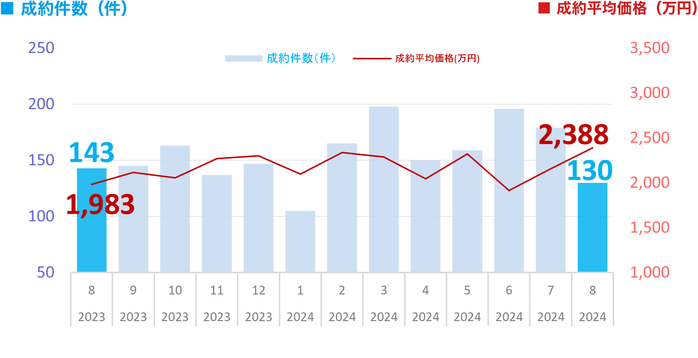 ※本ページ及びグラフは、財団法人東日本不動産流通機構『2024年8月度Market Watch』(全国版)に基づき、東急リバブル㈱が作成いたしました。