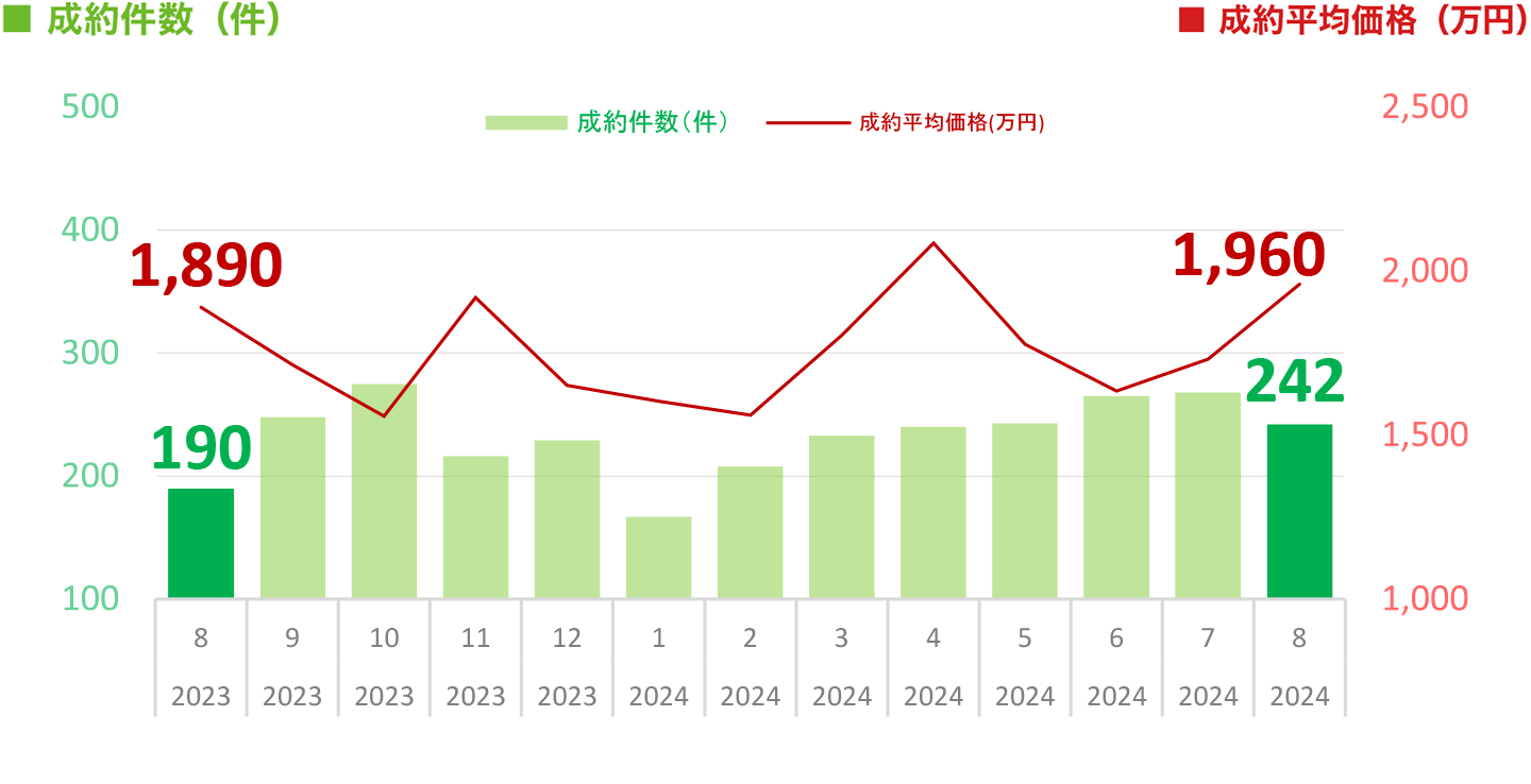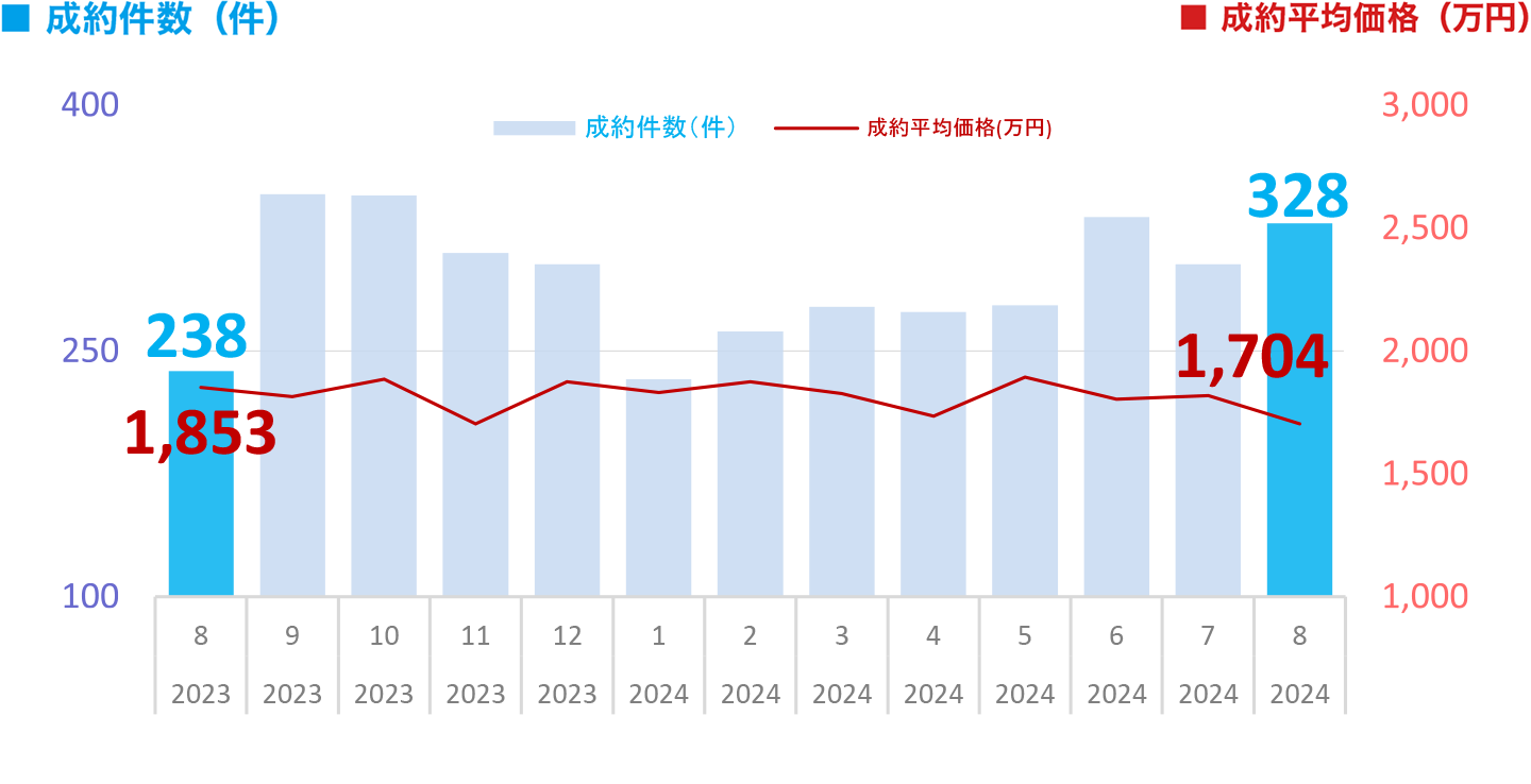 ※本ページ及びグラフは、財団法人東日本不動産流通機構『2024年8月度Market Watch』(全国版)に基づき、東急リバブル㈱が作成いたしました。