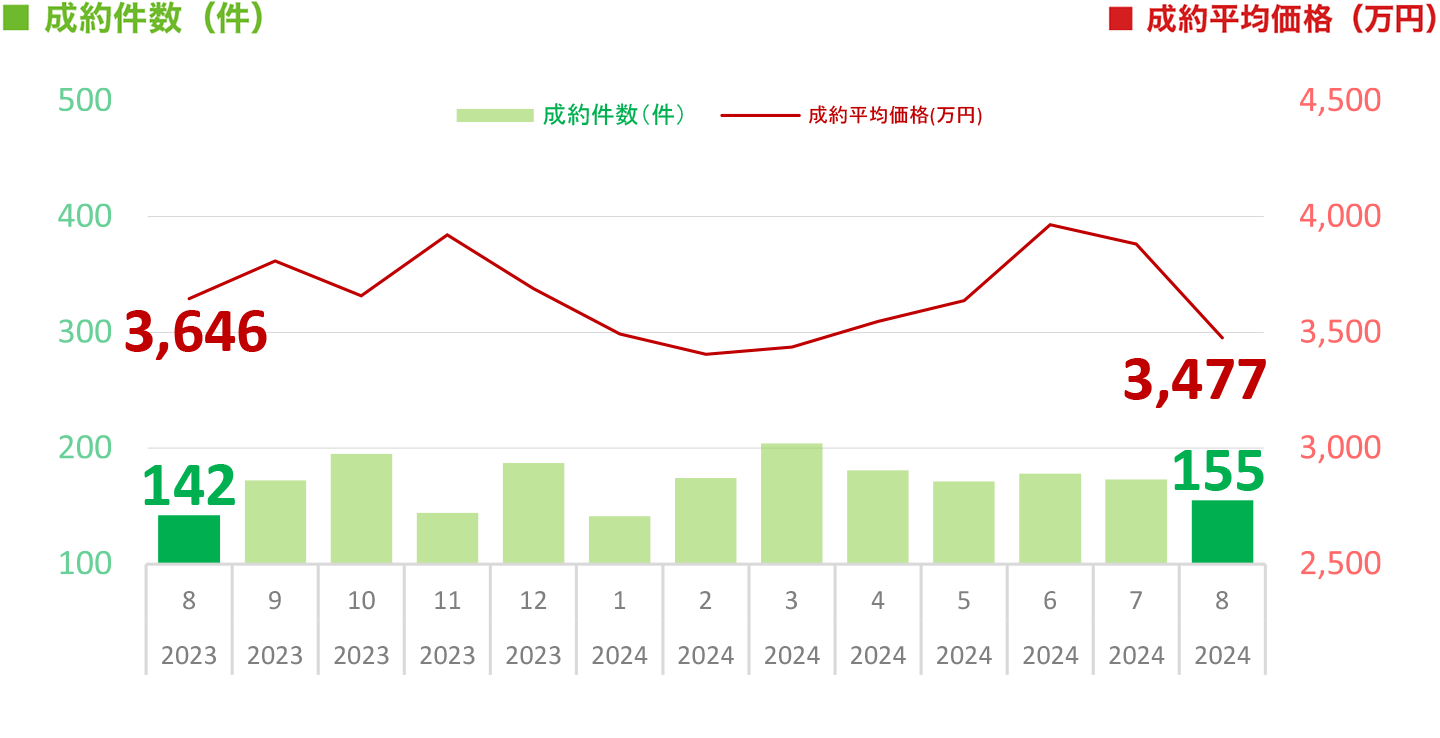 ※本ページ及びグラフは、財団法人東日本不動産流通機構『2024年8月度Market Watch』(全国版)に基づき、東急リバブル㈱が作成いたしました。