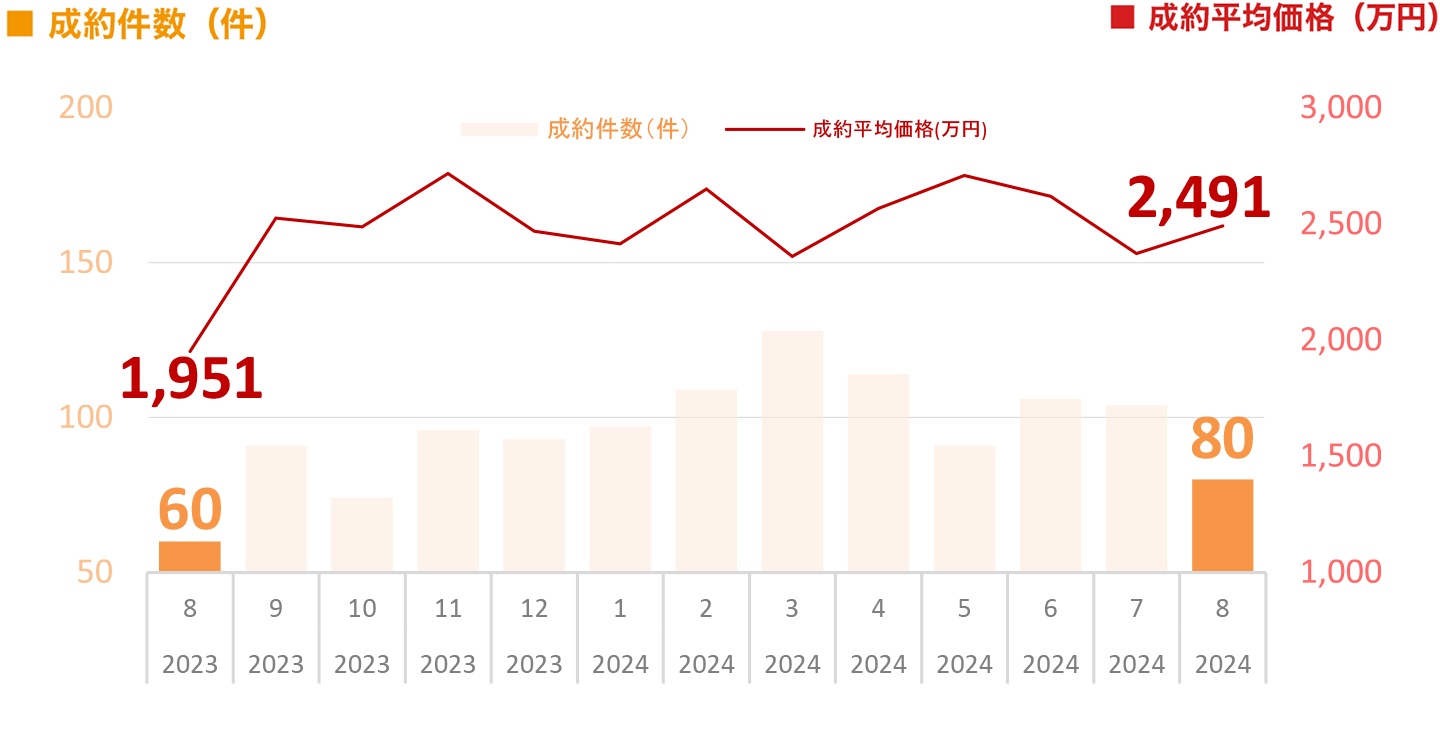 ※本ページ及びグラフは、財団法人東日本不動産流通機構『2024年8月度Market Watch』(全国版)に基づき、東急リバブル㈱が作成いたしました。