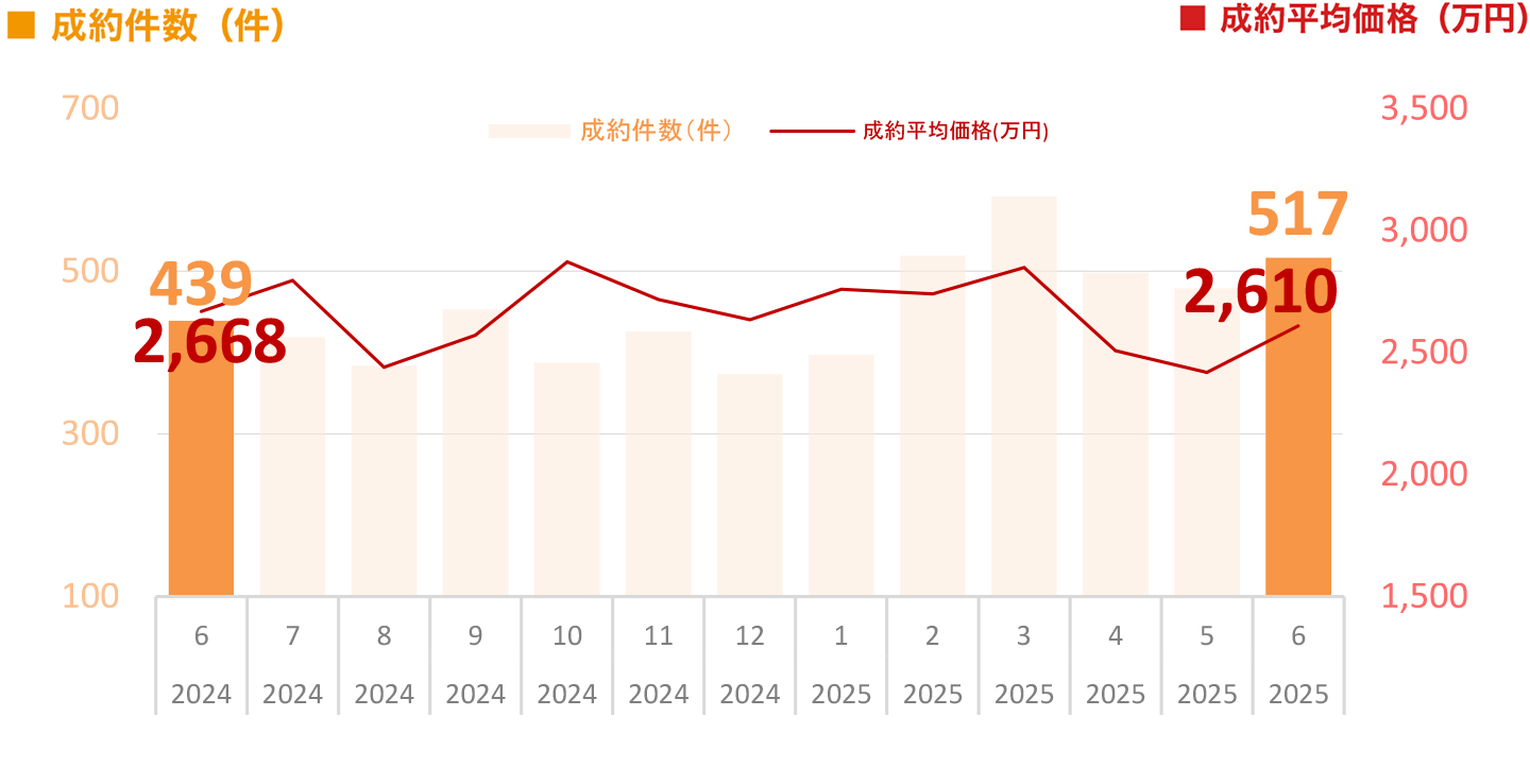 ※本ページ及びグラフは、財団法人東日本不動産流通機構『2025年6月度Market Watch』(全国版)に基づき、東急リバブル㈱が作成いたしました。