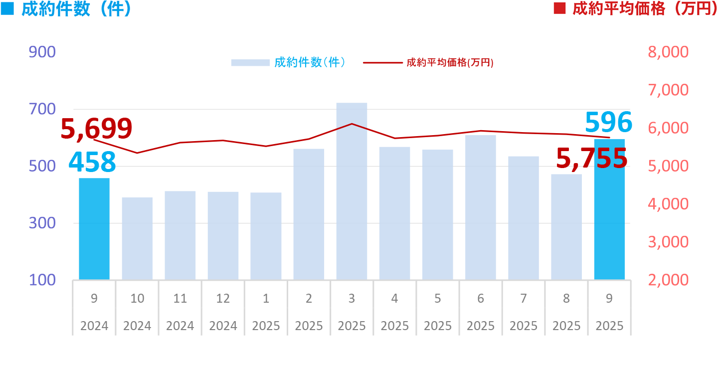 ※本ページ及びグラフは、財団法人東日本不動産流通機構『2025年9月度Market Watch』(全国版)に基づき、東急リバブル㈱が作成いたしました。