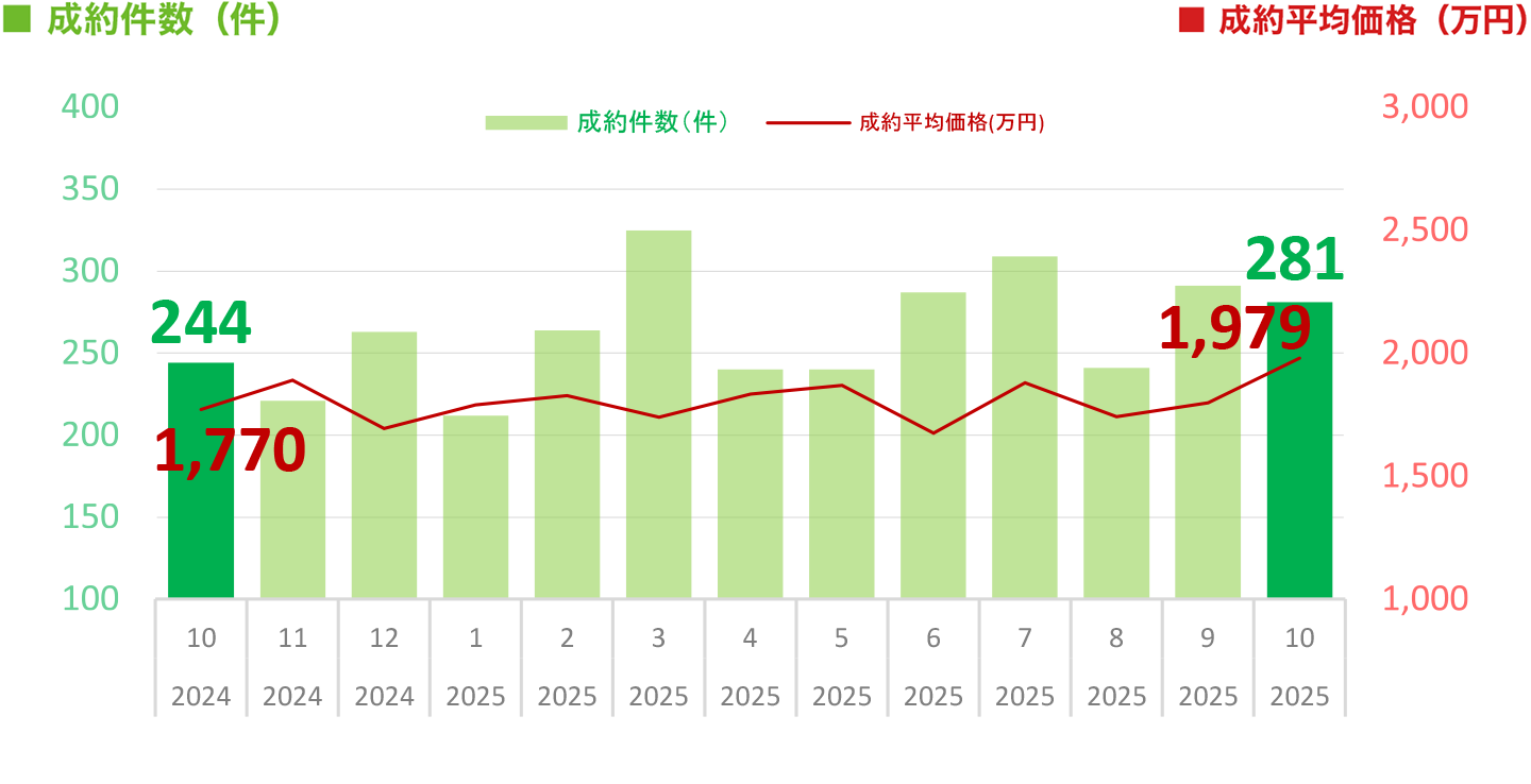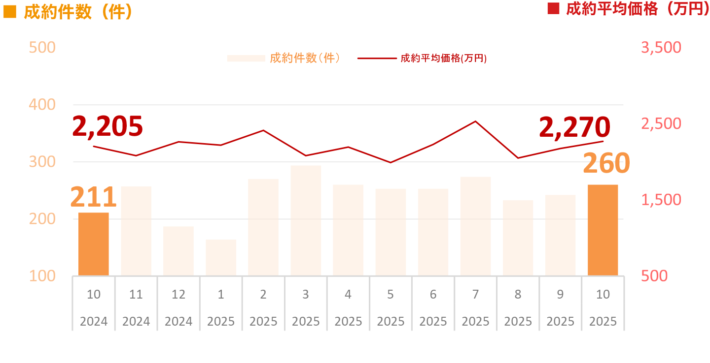 ※本ページ及びグラフは、財団法人東日本不動産流通機構『2025年10月度Market Watch』(全国版)に基づき、東急リバブル㈱が作成いたしました。
