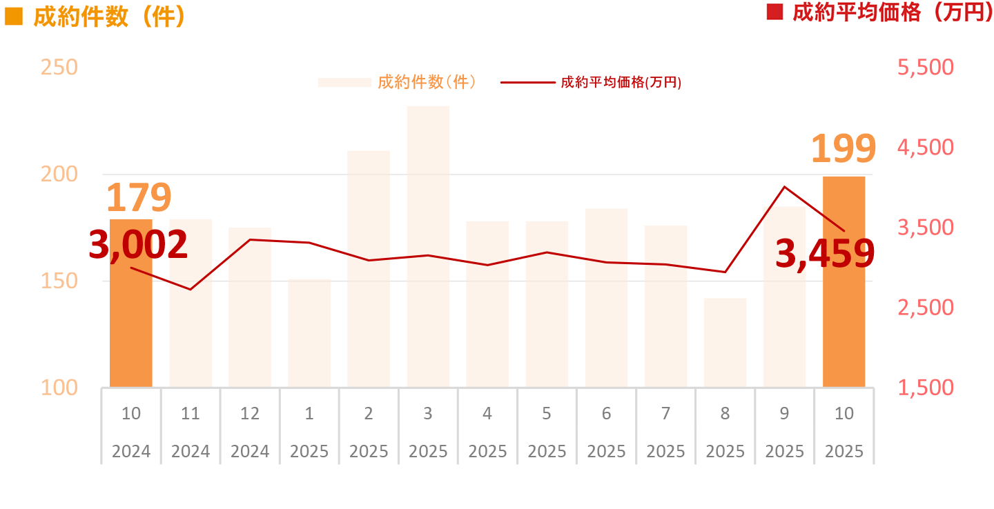 ※本ページ及びグラフは、財団法人東日本不動産流通機構『2025年10月度Market Watch』(全国版)に基づき、東急リバブル㈱が作成いたしました。