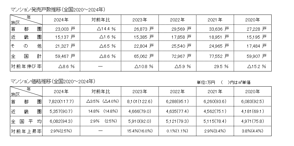 24年の全国マンション市場動向・発売戸数は8・6%減の5万9467戸