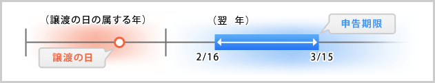 不動産の売却による利益(税法用語で『譲渡所得』)の確定申告は、不動産を譲渡した日の属する年の翌年の2月16日から3月15日の間に行うことになります。