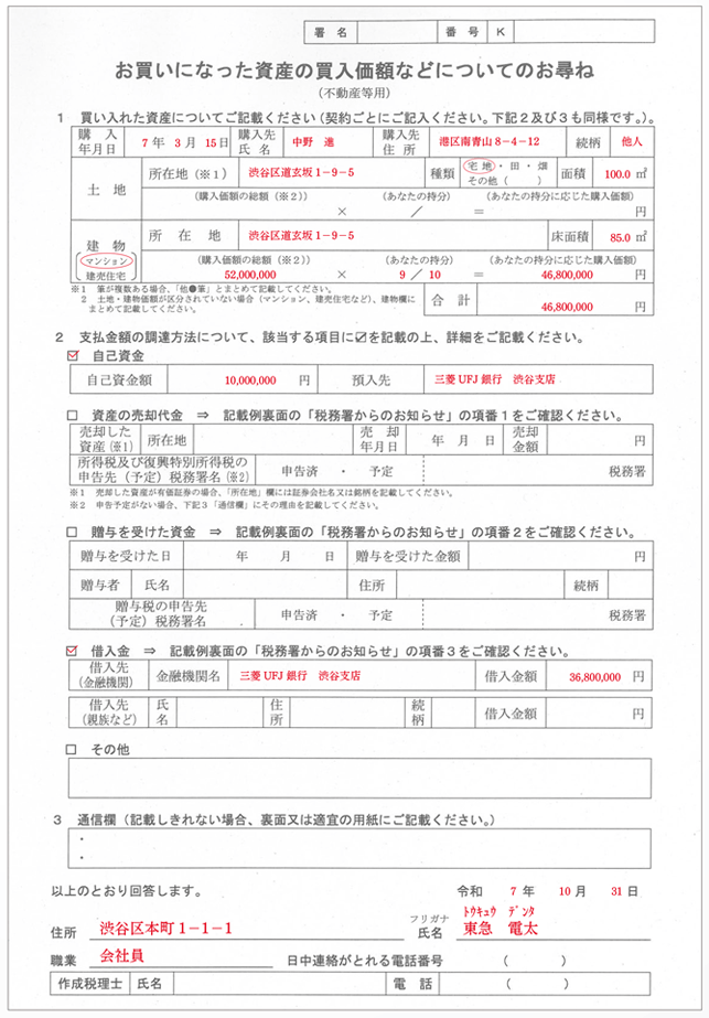 ⑨資産の買入価額などのお尋ね
