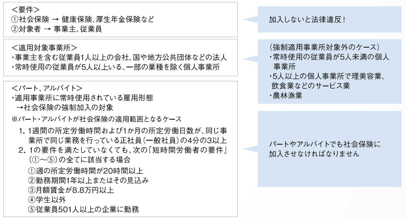 会社は規模に関係なく、社会保険制度への加入の義務があります。
