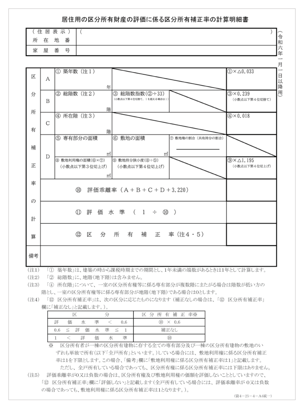 ※区分所有補正率は、築年数、総階数指数、所在階、敷地持分狭小度に基づき次表により計算されます。