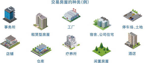 | 业务内容 | 房屋出售支持 房屋购买支持 房屋购入・出资 资产管理 房屋公司并购中介 调查・审定 报告书制作等 |