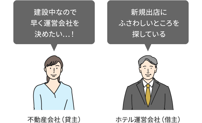 取引の対象となったのは北海道で建設中のホテル。入居を予定していたテナント(ホテル運営会社)が急遽解約となり、早急なリーシングが必要になりました。すでに建設が進んでおり、デザイン変更などを考慮するとすぐにでも代わりのテナントを決めなければなりませんでしたが、コロナ禍で新規出店を検討できる運営会社は限られている状態でした。