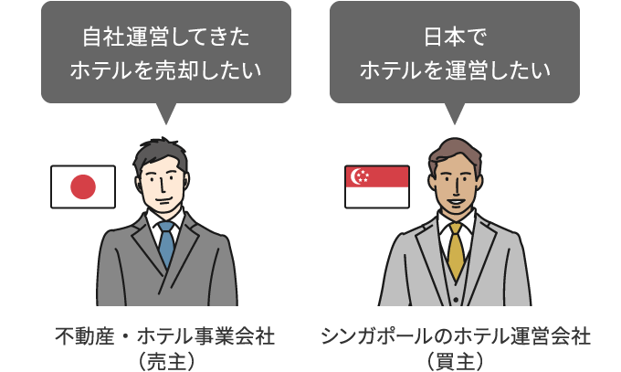 売主は自社で所有・運営するホテルの売却先を探しており、日本への出店を希望するシンガポールのホテル運営会社が購入候補に。そのため、交渉や各種手続きにあたっては商慣習や言葉の違いを双方に理解していただくことが重要でした。当初の条件から希望が変わることもあり、条件調整には丁寧に対応していく必要がありました。