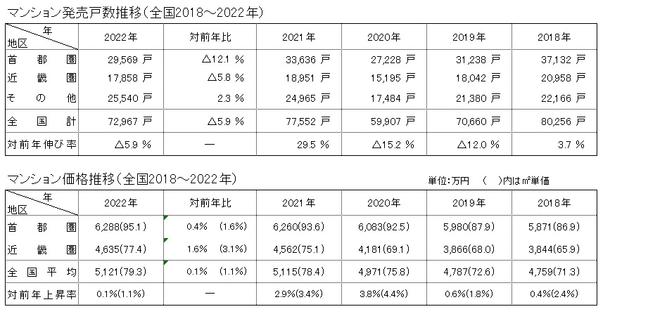 22年の全国マンション市場動向・発売戸数は5・9%減の7万2967戸