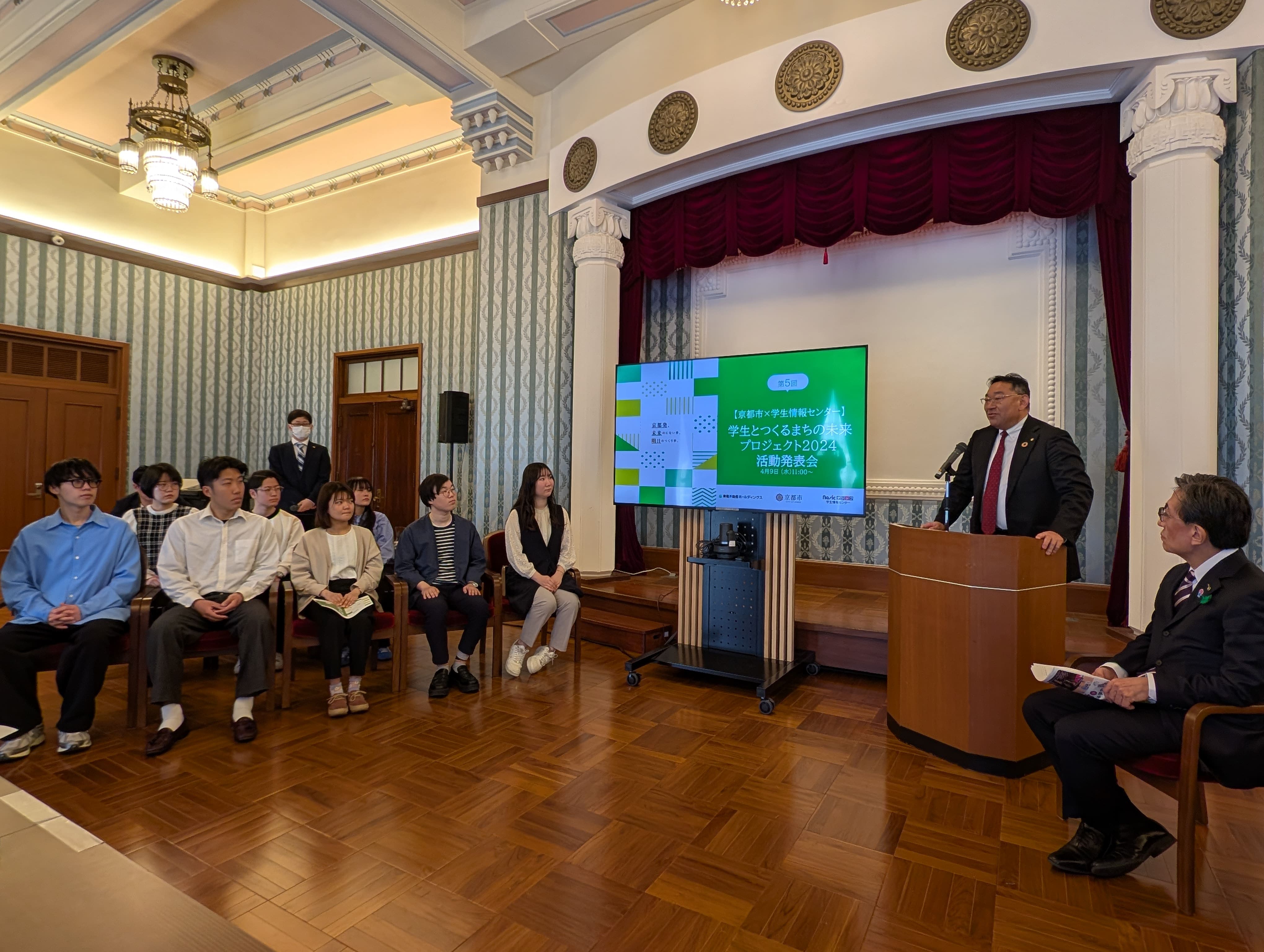 学生情報センターは、東急不動産ホールディングスや京都市と連携して地域の社会課題に対する解決を考える「学生とつくるまちの未来プロジェクト」の活動発表会を、京都市役所本庁舎で9日開催した。活動内容からデジタルブックを制作したほか、インスタグラムでの発信も行う。学生情報センターの吉野一樹社長は「学生によるプロジェクトが発信され、社会問題を身近に感じて欲しい」と話した。