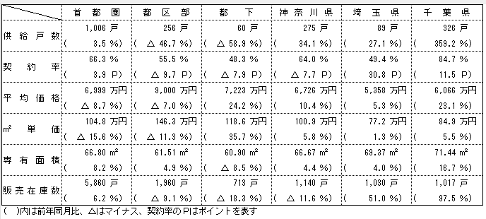 - 4月のマンション市場動向・首都圏、発売は3・5%増の1006戸