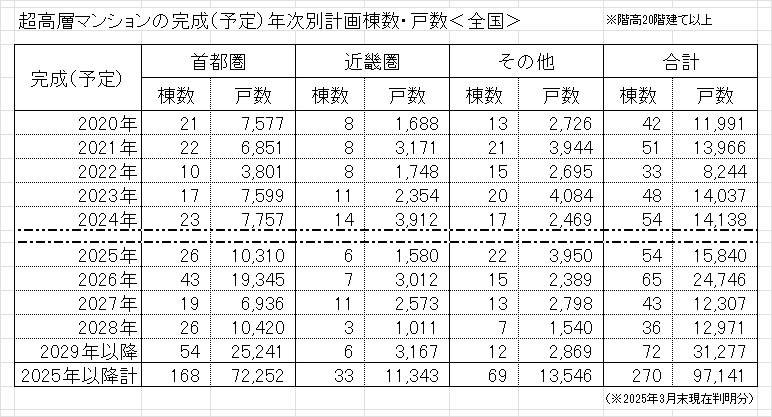 - 超高層マンション市場動向・25年以降全国で270棟9・7万戸完成